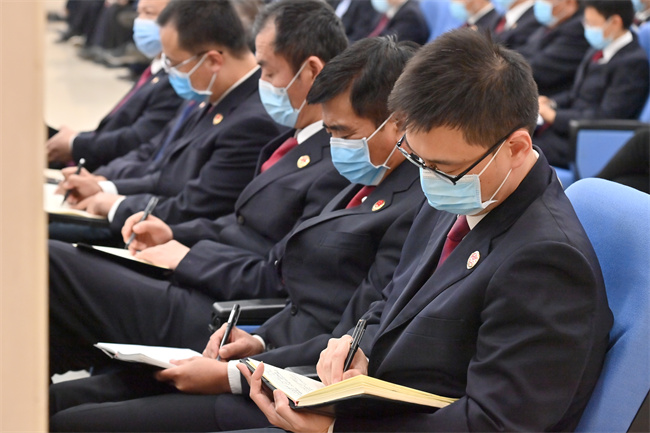 报告会以电视电话会议形式开到县级检察院。最高检院领导、检委会专职委员,中央纪委国家监委驻最高检纪检监察组,机关各内设机构、各直属事业单位全体党员干部在主会场参会。地方各级检察院、各级军事检察院全体人员在分会场参加报告会。